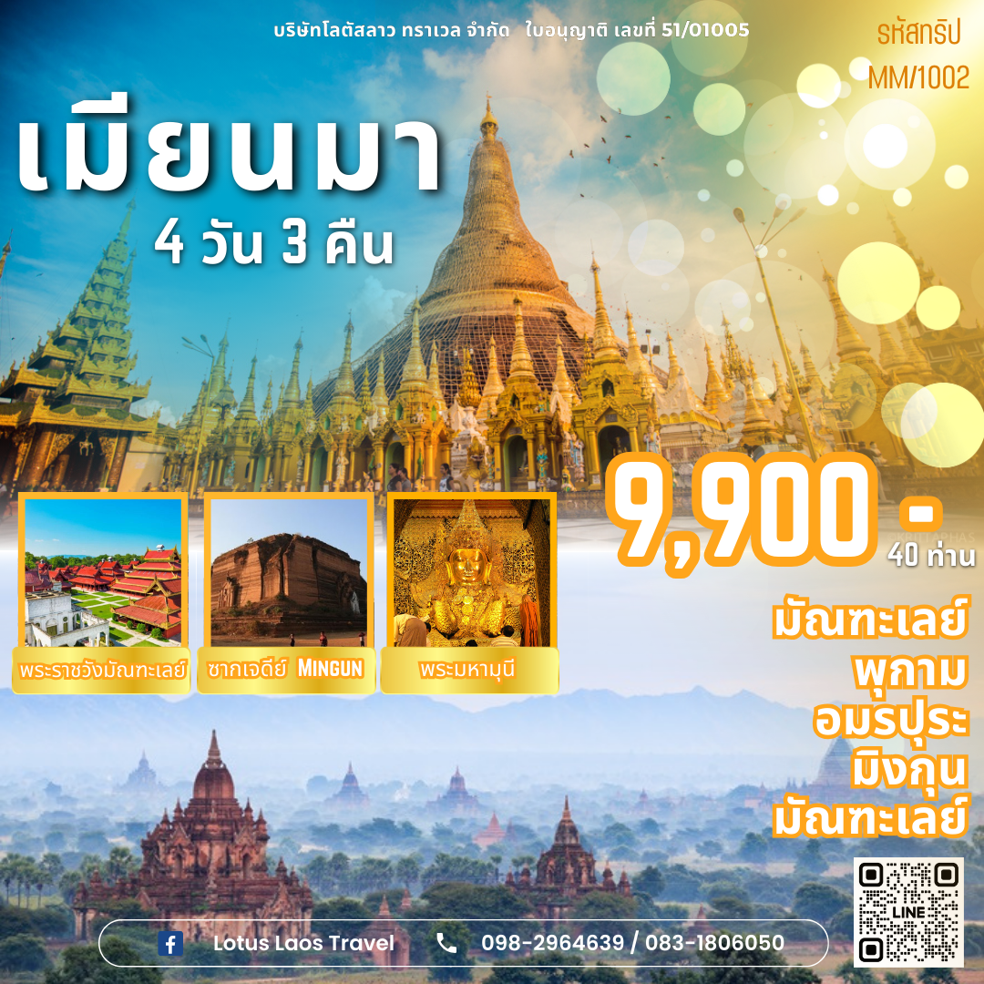 ⭐ มัณฑเลย์ ทะเลเจดีย์พุกาม นั่งเรือเที่ยวมิงกุง สพานอูปิง พระราชวังมัณฑเลย์ เจดียืกุโสดอร์ เจดีย์หยกเกาสง