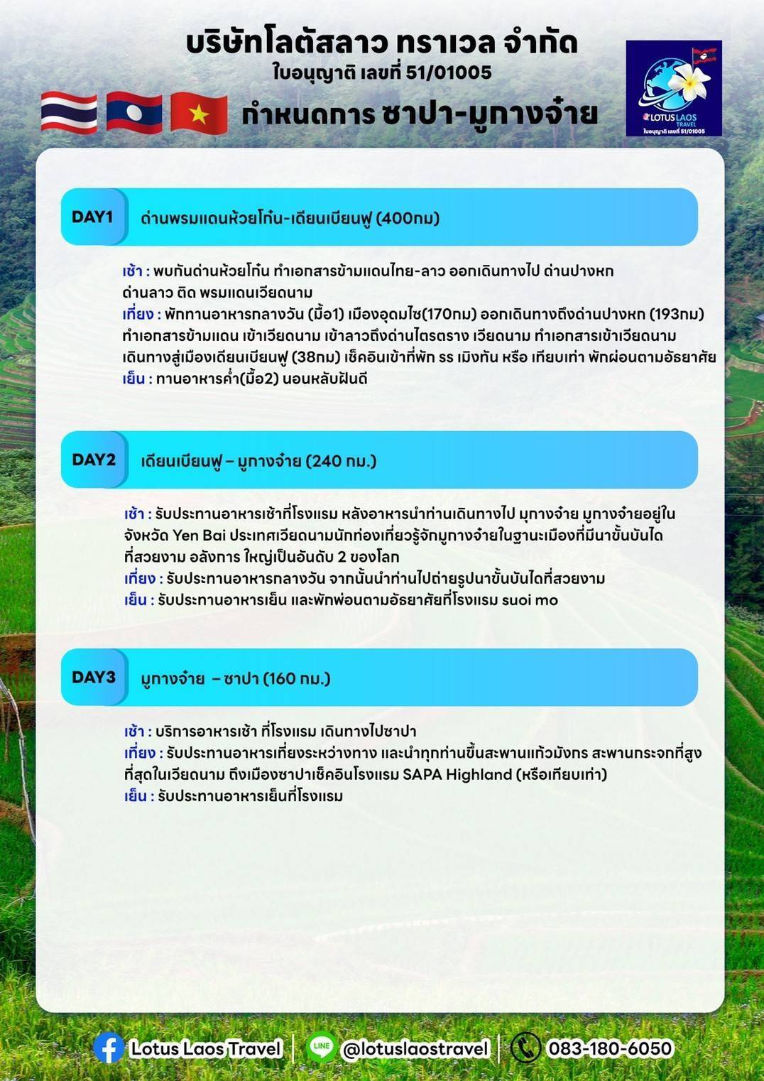 ดูทัวร์ทั้งหมด ผ่านเว็บไซต์ : https://lotuslaostravelcaravansadventure.com/